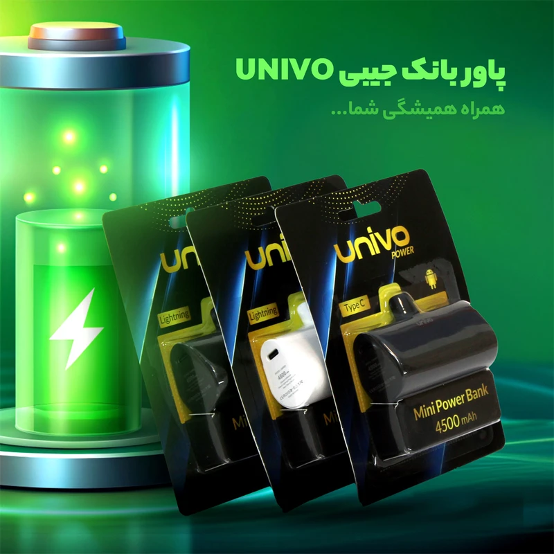 Univo یکی از برندهای پیشرو در حوزه تکنولوژی با طراحی و تولید جدیدترین و استانداردترین محصولات توانسته جایگاه ویژه‌ای را در میان مخاطبان مصارف خانگی، اداری، طراحی و گیمینگ کسب کند. Univo اینبار بر اساس نیاز سنجی مخاطبان، محصول جدیدی به نام مینی پاور بانک UN5000 با طراحی منحصر به فردی ارائه داده است که در ادامه به بررسی تخصصی Mini Power Bank میپردازیم. مینی پاور بانک مدل Univo UN5000 با وزن تنها 94 گرم و ابعاد 78×48×27میلی‌متر، نمونه‌ای ایده‌آل از پاور بانک‌های سبک و کم حجم است که به راحتی در کیف یا جیب شما جای می‌گیرد. این طراحی نه تنها سهولت در حمل را فراهم می‌کند، بلکه به دلیل ظاهر زیبا و جمع و جور، در میان کاربرانی علاقه مندان زیادی را به خود جذب کرده است. پاور بانک UN5000 با ظرفیت 4500 mAh به کاربران اجازه می‌دهد بدون نگرانی از تمام شدن باتری دستگاه‌ها، روز خود را سپری کنند. خروجی‌های Type C این امکان را می‌دهند که دستگاه‌های مختلف با سرعت و کارایی بالا شارژ شوند. هر دو پورت خروجی و ورودی این مدل از شدت جریان 2 آمپر و ولتاژ 5 ولت پشتیبانی می‌کنند، که نشان‌دهنده قابلیت شارژ سریع و ایمن است. پاور بانک UN5000 دارای پورت‌های Type C بوده که تنوع در اتصالات را فراهم می‌آورد. با استفاده از باتری تسلا، کاربران می‌توانند به سرعت دستگاه‌های خود را شارژ کنند. استفاده از پورت Type C به عنوان ورودی همچنین تضمین می‌کند که کاربران می‌توانند با استفاده از یک کابل واحد برای شارژ پاور بانک و دستگاه‌های مختلف، به راحتی نیازهای شارژ خود را برآورده سازند. ولتاژ و جریان یکسان 5 ولت و 2 آمپر برای هر دو پورت خروجی و ورودی، کارایی و انعطاف‌پذیری شارژ را بهبود می‌بخشد. پاور بانک UN5000 از Univo با طراحی مدرن و کاربردی خود، انتخابی عالی برای کاربرانی است که به دنبال یک راه حل شارژ قابل حمل و در عین حال قدرتمند هستند. این محصول با توجه به ویژگی‌های فنی برجسته و طراحی زیبای خود، می‌تواند پاسخگوی نیازهای روزمره شما باشد و اطمینان حاصل کند که دستگاه‌های شما همیشه شارژ و آماده استفاده باشند